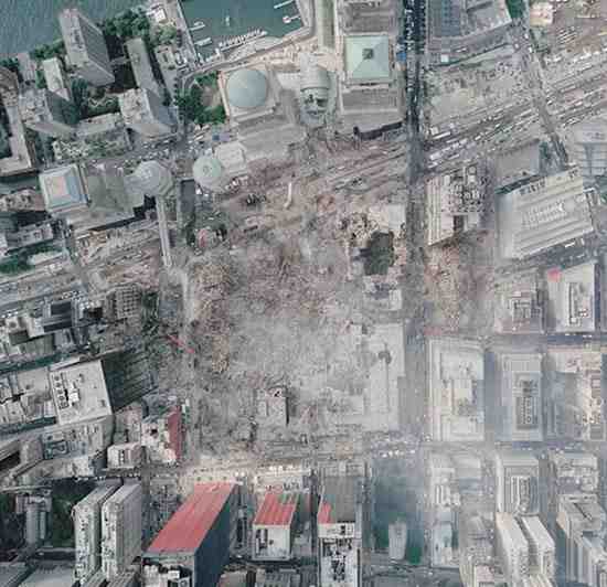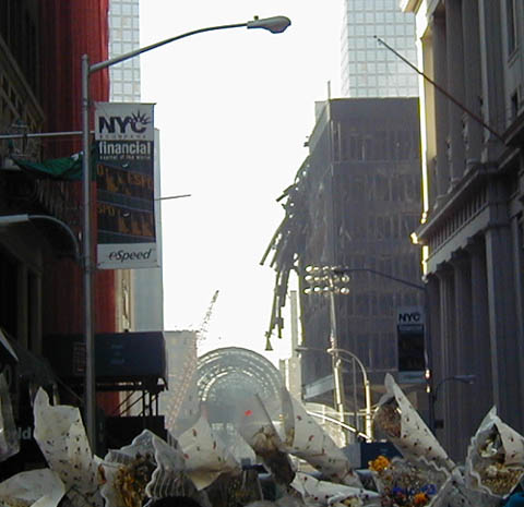collapsed towers, and the Wall Street area is eerily quiet. We took only a few