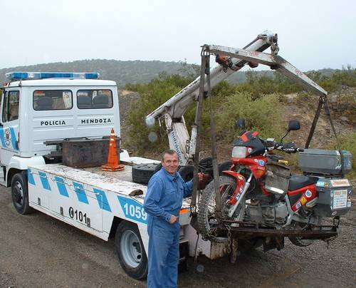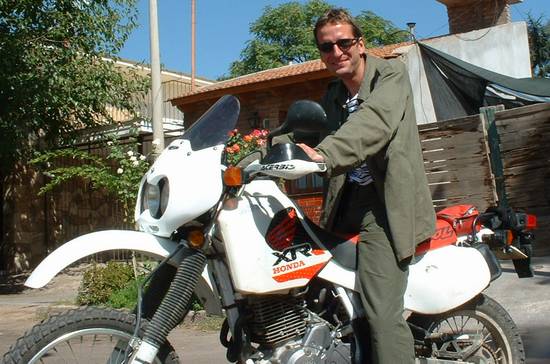 lunch together. Hes on a highly modified F650 Dakar and traveling around South